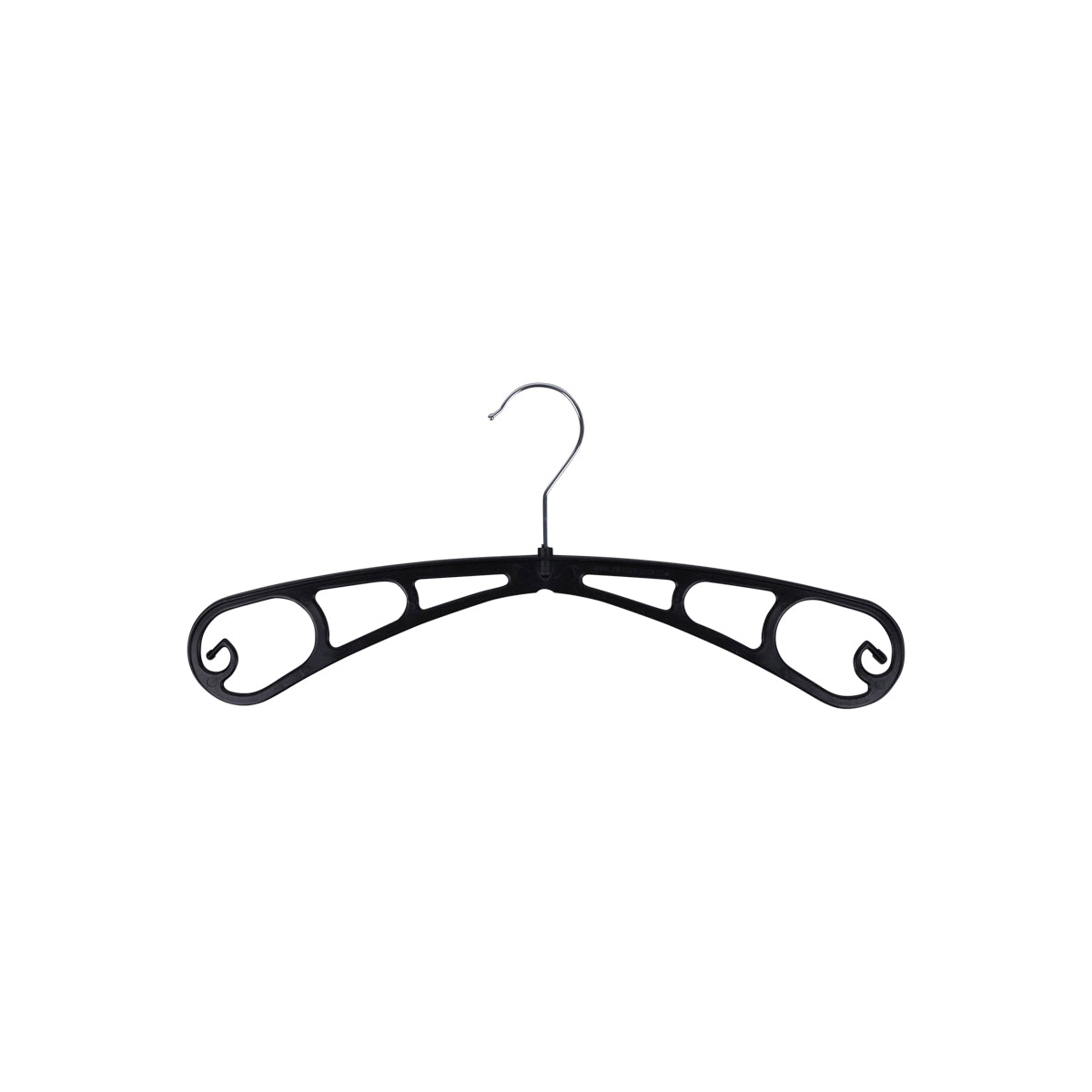 The S-38 plastic hanger (approximately 38 cm wide) is ideal for hanging skirts and trousers. Thanks to its flat design, this hanger is perfectly stackable and suitable for daily use in laundromats, shops, and at home.